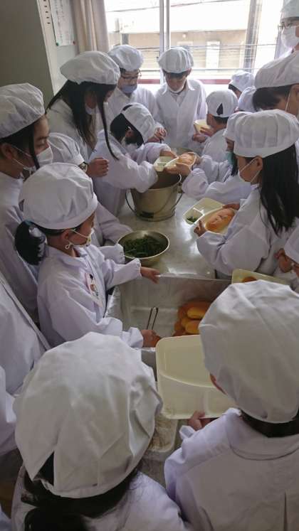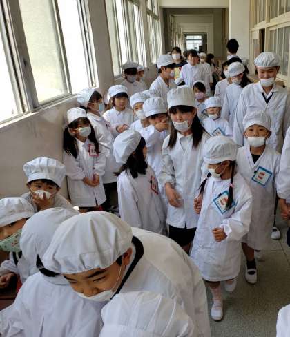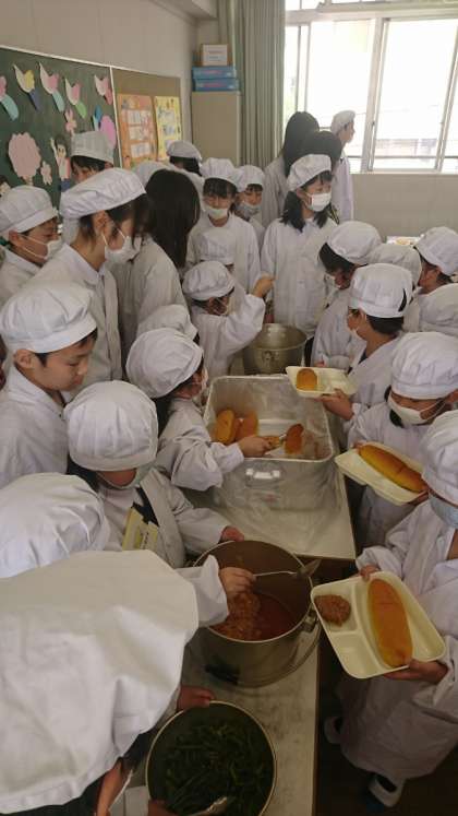 6年生として最初の仕事。4月9日(火)から1年生の給食のお手伝いをしています。