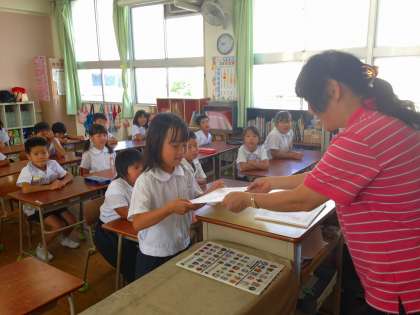 8月29日(金)に今年度第1回目の漢字検定が実施され、2年生〜6年生の児童が挑みました。問題は1学期に習った漢字を中心に「読み」10問、「書き」10問の合せて20問が出題され、16問(80点)以上の正解で合格です。