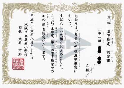 多くの児童が合格でき、本格的な認定書を手に笑顔を見せていました。