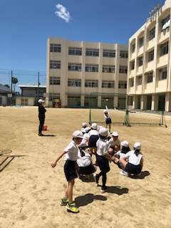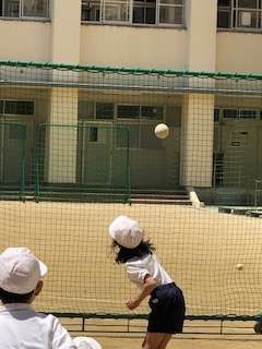 2年生がスポーツテストに向けてボール投げの練習をしました。