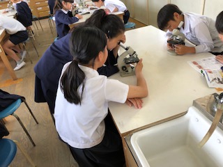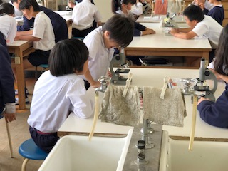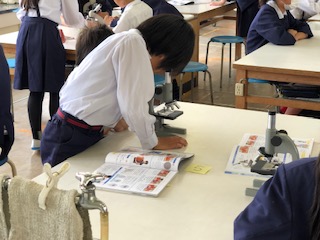 5年生が、理科室で顕微鏡の使い方を学習しました。
