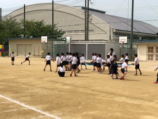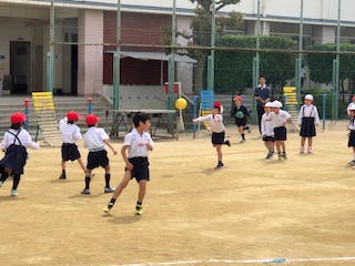 1年生と2年生が、休み時間にボール遊びをしていました。