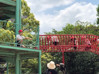 大阪城公園では、他の小学校や幼稚園、保育所の児童や園児たちもたくさん遊んでいました。固定遊具を使うときは、順番を守り、楽しく活動をしていました。