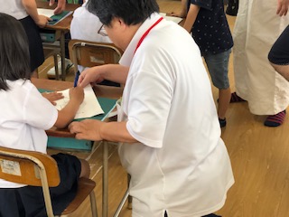 カッターナイフを使う時には、保護者の方にもお手伝いをいただきました。