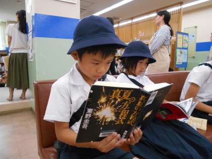 館内では閲覧室で自由見学をしたり,検索機を使って気になる本を探したりしました。また図書館の職員の方からは,此花図書館の歴史や説明,絵本の読み聞かせなどもしてもらいました。たくさんの本に囲まれてみんな思い思いの一冊を手に取っていました。中には大人が読むような難しい本を読んでる子どももいました。