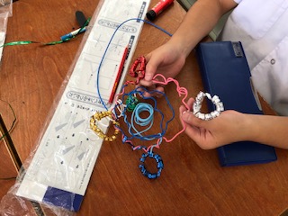 子どもたちは、指先を一生懸命動かして、針金をねじったり曲げたりしていました。夢中になって作る作品は、それぞれ工夫を凝らしており、完成が待ち遠しいです。