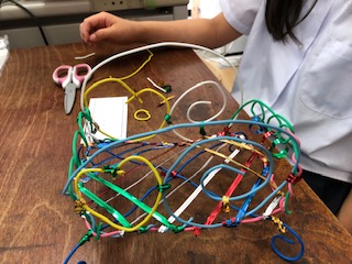 4年生が図画工作の時間に、針金を使った立体作品を作っていました。