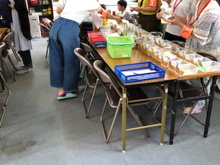 制服リサイクルの隣では、前回ボランティアの皆さんにお手伝いをいただいたベルマークを仕分けたものを、今回は整理されていました。