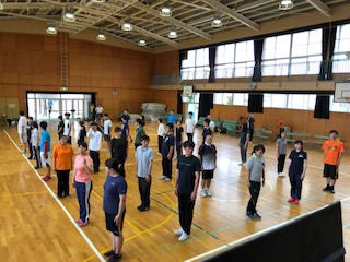 研修では、集合・整列・行進・斜め交差・列の増減など、息を合わせる行動が求められます。この研修で、隊列を意識することや周りと一緒に動くことを体験し、今後の指導に役立たせていきます。