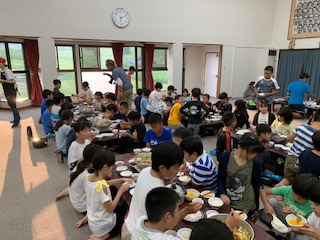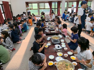 いただきますの後、みんな楽しく鍋を囲んでいます。