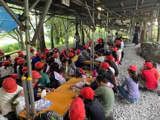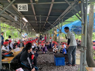 長い野外炊飯の片付けがようやく終わり、焼き板の製作に移りました!