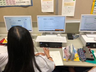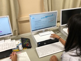 6年生が国語「資料を生かして呼びかけよう」の学習で、原稿づくりのためにパソコンを使って調べていました。