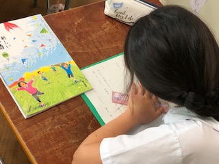 文の構成を考える時に、主語や述語に加えて修飾語を使うことで、もっと詳しく説明できることを学習しました。子どもたちは、ワークシートに学習したことを利用して文章を考えていました。