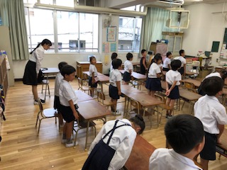本日から運動会本番(9/29)までの2週間、それぞれの学年に一人ずつ入り実習を行います。今日は、子どもたちも実習生もお互いに緊張していました。