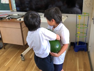 冬瓜を持つ時には、目を輝かせて活動をしていました。