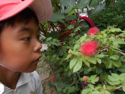 咲くやこの花館では,地球上の様々な気候帯に生育する植物を観て回りました。中には子どもよりも大きな葉を持つ植物や不思議な花を咲かせている植物もあり,子どもたちも興味津々で観ていました。
