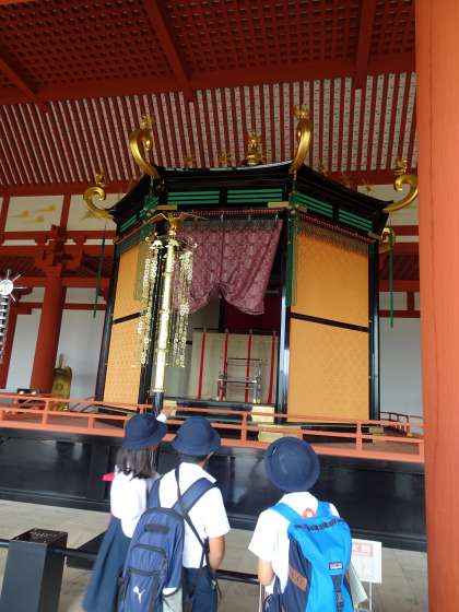 歴史は6年生で学習しますが,一足先に奈良時代の風を感じ,スケールの大きさや歴史の深さに驚き,興味がわいたようすでした。
