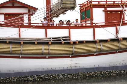 写真3:遣唐使船に乗船することができます。命がけで中国へ出航〜…のつもり〜♪