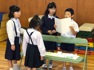 生活科の学習「おもちゃランド」が行われました。2年生が、1年生を楽しませるために工夫して遊びを用意していました。