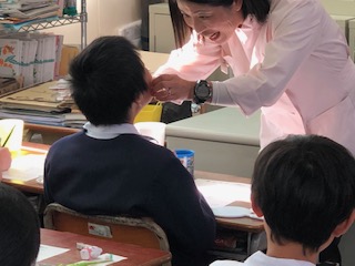 歯磨きの学習後、保健室で校医先生にフッ化物塗布をしてもらいました。