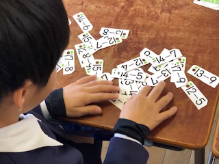 1年生が、算数の学習で計算カードを使っていました。