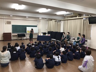 1年生のために、図書ボランティアの方が絵本の読み聞かせをしてくれました。