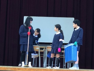 発表では、そうじをテーマにした劇やクイズなどがあり楽しい集会となりました。