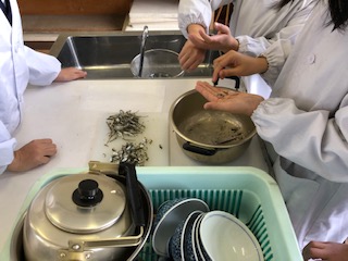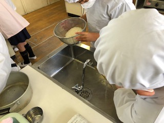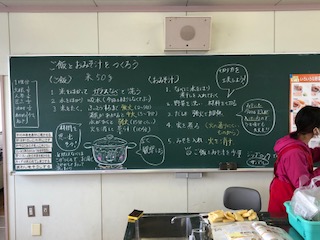 子どもたちは、調理の順序を確認した後、お米をといだり、みそ汁のだしを取ったりしていました。