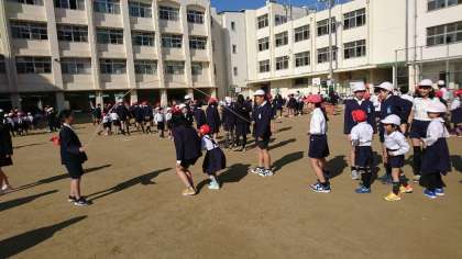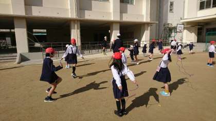 今回は、なわとびを使っていろいろな跳び方を一緒に練習したり、大縄跳びをしたりして交流しました。1年生が大縄を跳べるようになると、自然に拍手と歓声が上がる場面もありました。お天気もよくとても楽しいひと時でした。