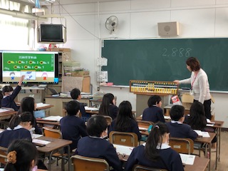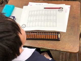 そろばんに慣れている子どもや、初めてそろばんを使う子どもなどの中で、和やかな雰囲気で学習が進められていました。