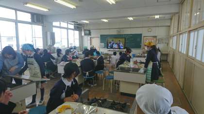 3組と4組の調理実習「ホットケーキ作り」です。こちらの茶話会もスライドショーを見たり歌を歌ったりして楽しく笑顔に包まれた時間でした。