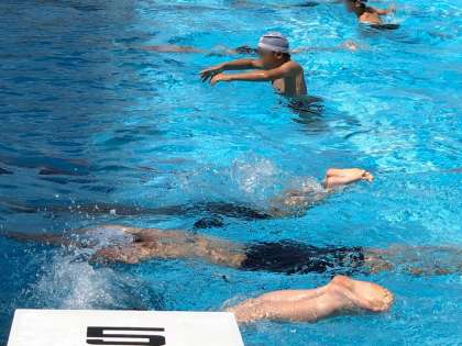 子どもたちは、先生の指示に従い、第1回目のプール学習にしては上手に泳げていました。伏し浮きや蹴伸び、バタ足など集中して取り組んでいる姿に感心しました。。