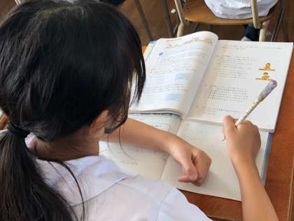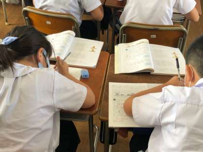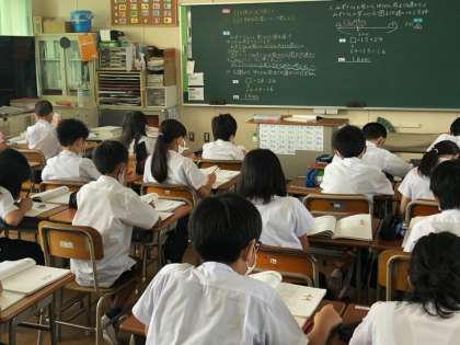 子どもたちは、課題をノートに書く時は静かに取り組み、立式や計算の解き方を発表する時はたくさんの子どもたちが挙手し、発言していました。教室での雰囲気は、集中して心地よい緊張感でした。