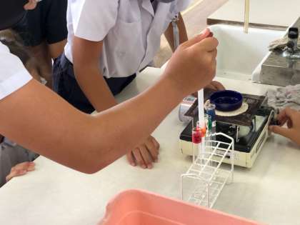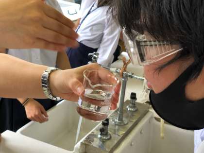6年生が、理科「水よう液の性質」の学習で実験をしていました。