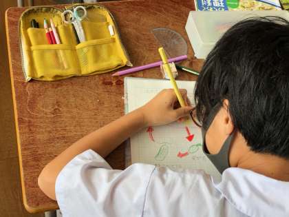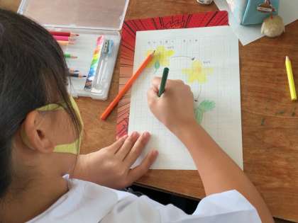 5年生が理科「花のつくり」の学習のまとめに取り組んでいました。まとめでは、花から実へのサイクルをノートに丁寧な絵を描きながら、ふり返っていました。ふり返りの中で、雄花や雌花、受粉などの学習した知識も書き表していました。
