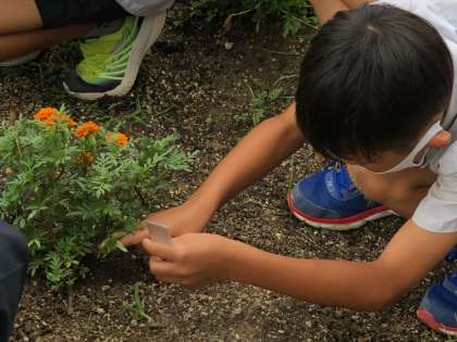 3年生が、理科の学習でマリーゴールドの観察をしていました。