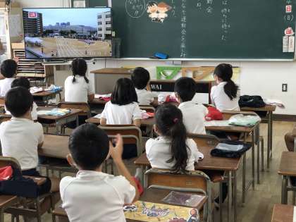 教室で応援しました