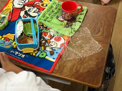 給食の時間では、持ってきたお弁当を教室で楽しそうな様子で美味しくいただいていました。