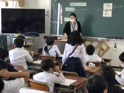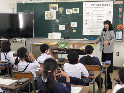 3年生が栄養についての学習をしました。他校の先生をお迎えして、「野さいと友だちになろう」というテーマで学習をしました。
