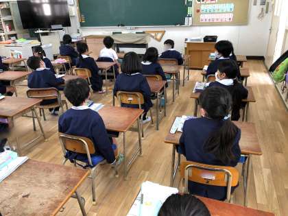 始業式は校内放送で行いましたが、子どもたちは校長先生や生活指導の先生の話を姿勢よく聞いていました。その後は、いつも通りの学習や掃除に取り組みました。