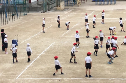 5時間目、運動場でドッジボールをしているのは5年生でした。