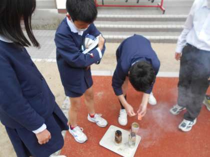 どちらがより,よく燃えるかを予想し,実験をしました。