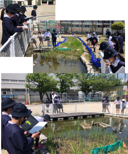 あめんぼ、メダカ…目当てのものを池で見つけることができましたが、さすがに、バッタやカマキリはいないようです。