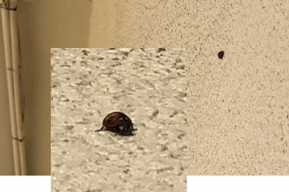 見つけられたものに〇印を付けて、教室に帰っていく子どもたちでしたが、みんなが去った校舎の壁に、担任の先生が、テントウムシを見つけました。