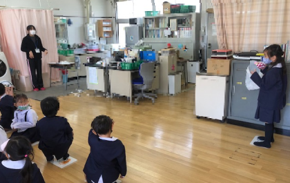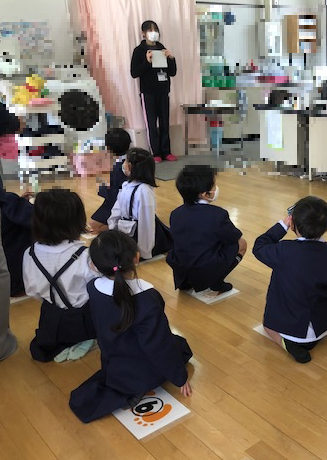 保健室で静かに検査を受けているのは1年生でした。養護教諭から見せられたカードに書いてある輪の、開いている方向を答えます。