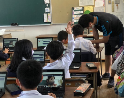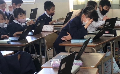子どもたちはとても興味深げで、熱心にパソコンを操作していました。
