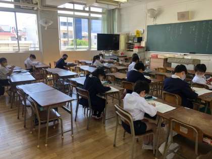 1、2時間目に登校の子どもたちは、今日は、静かに教室でプリント学習です。