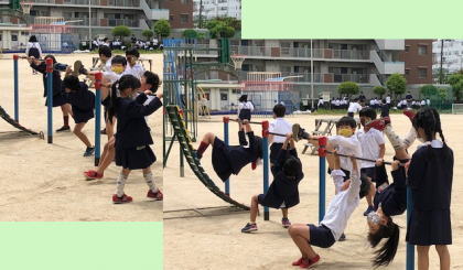 3時間目と4時間目の間の休み時間。外で元気に遊ぶ子どもたちの姿があります。