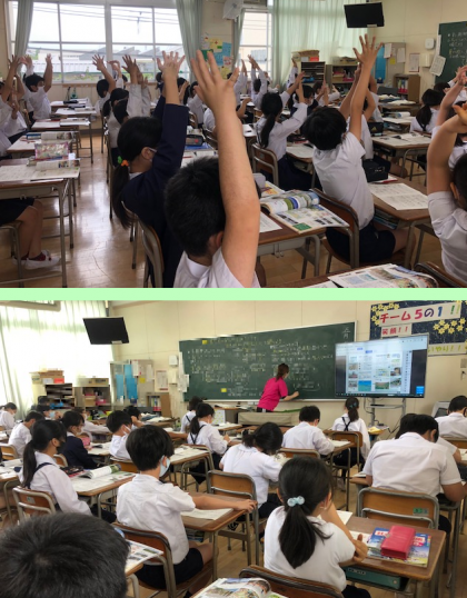 4時間目、5年1組は社会の時間です。群馬県にある嬬恋村について学習しました。嬬恋村は、夏の冷涼な気候を活かした高原野菜の栽培が盛んで、高原キャベツの産地として知られています。その、キャベツづくりのくふうと自然を生かした生活について調べるのが、今日のめあてです。