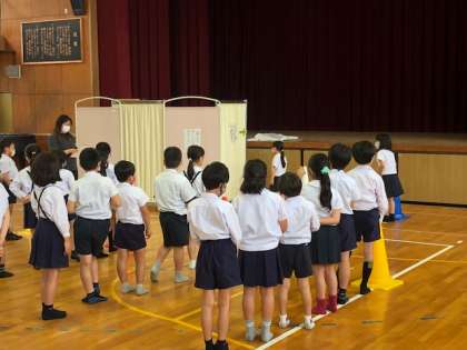3年生に続き、4年生も行いましたが、講堂は、シンとした中で検診が進められました。